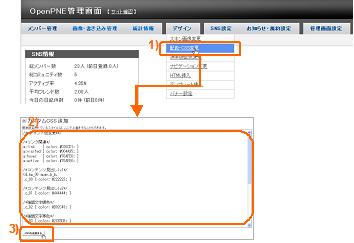ここでは、携帯版でのSNSの配色や細かいデザインの設定(カスタムCSS)をします。配色は、