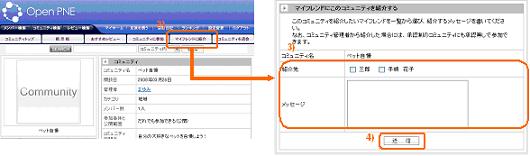 - コミュニティ紹介メッセージが選択したマイフレンドに送信されます
